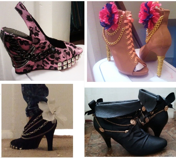 RANDOMLY ONE DAY I THOUGHT ABOUT PURCHASING SHOES AND DESIGNING "ONE AND ONLY" UNIQUE LOOKS BY BEING CREATIVE USING DIFFERENT MATERIALS AS THE ONES I'VE USED ABOVE! THE SHOES ABOVE ARE THE ONLY PAIRS THAT I'VE DONE SO FAR. I WILL BE TAKING ANY REQUEST, IF YOU HAVE YOUR OWN SHOE, OR WANT ME TO PURCHASE A PAIR AND DESIGN THEM FOR YOU TO PURCHASE. THE PRICE WILL VARY DEPENDING ON IF YOU'RE PROVIDING, OR I'M PROVIDING THE SHOES. I WILL PROVIDE THE MATERIALS AND YOU CAN GIVE ME ANY IDEAS,COLORS,ETC. THAT YOU MIGHT WANT ME TO USE. FEEL FREE TO INBOX ME FOR MORE INFORMATION IF YOU'RE INTERESTED. I WILL BE DOING MORE SHOES VERY SOON FOR YOU GUYS TO VIEW SO CONTINUE TO CHECK BACK. :)